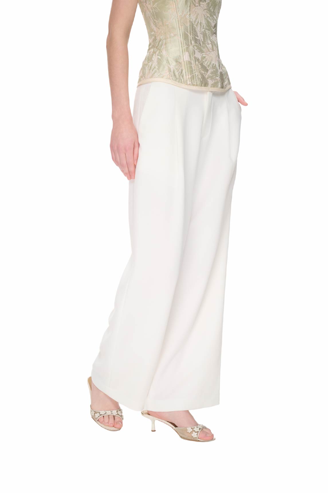 The Amber Pants are cut in a low-rise, straight-leg silhouette, offering a relaxed yet refined line. Crafted from rain crepe, the fabric brings a soft drape and subtle structure, balancing comfort with quiet elegance. Two front pockets complete the design with understated practicality.